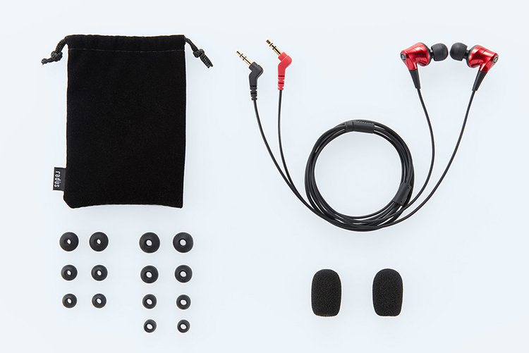 装着感に合わせてイヤーピースの位置を2段階で調節可能な「アジャスタブルポート」を採用。イヤホンをしっかりフィットさせることで、低音再生能力の向上と、長時間にわたる収録での耳へのストレスを軽減するという。屋外での強風時などに発生する風切り音を約20dB軽減する着脱式のウィンドスクリーン(風防)も付属する。