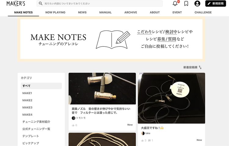 「MAKER'S」は、finalが展開するDIYイヤホン「MAKE」のファンが集まるコミュニティサイト。MAKEのさまざまな音のチューニング=レシピやレビューを公開することができるもので、これまでは登録者のみが投稿、閲覧できたが、今後は誰でも閲覧できるようにリニューアルされる(投稿とコメントについては引き続き登録者のみ)。また、川崎のfinal Store本店も改めて「REB」ブランドとしてリニューアル予定としている。