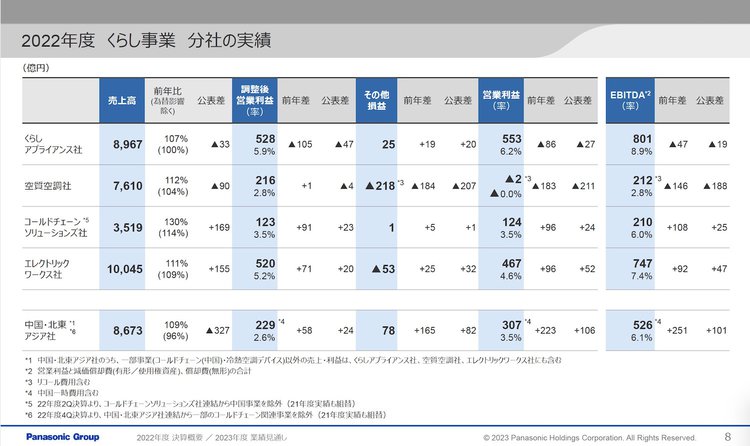 パナソニック2022年度決算はくらし事業など販売増で売上高増収、公表値を上回る