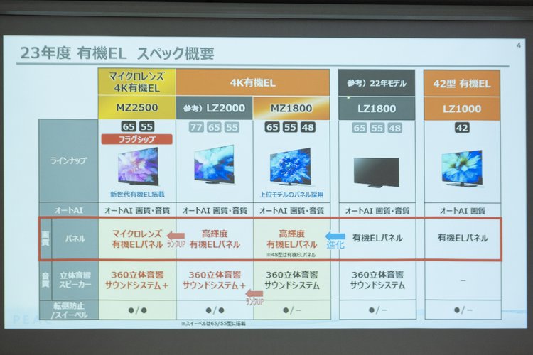 65型と55型モデルでは、昨年のフラグシップ機「LZ2000」に用いられた独自設計・組み立ての高輝度有機ELパネルと制御技術「Dot ContrastパネルコントローラーPro」を搭載。高コントラストな映像で、その場で見ているかのような臨場感を実現したという。