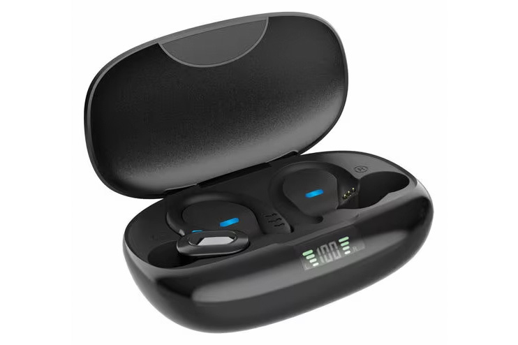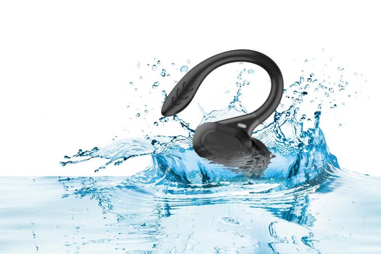 IPX7準拠の防水機能を備えたイヤーフックタイプのスポーツイヤホン。耳に掛けて固定する形状を取ることで、通常のイヤホンと比較してズレたり外れたりしにくいため、同社ではランニングやジムトレーニング、スポーツといったシーンに適したモデルだと説明している。