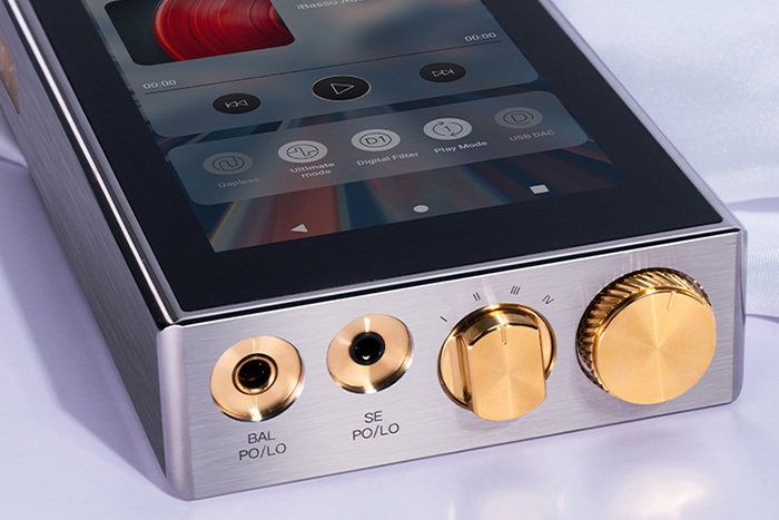 アンプも独自の「iBasso Super Class-Aディスクリートアンプ回路」を搭載。ニチコン製アルミ電解コンデンサーやerse製フィルムコンデンサーなどを採用することで、トランジスターのスイッチングによる歪みを抑制。発熱も大幅に低減しつつ、A級アンプならではの低歪みのサウンドが楽しめるとしている。アナログ出力端子は、4.4mmバランスヘッドホン/ライン出力、3.5mmシングルエンドヘッドホン/ライン出力を搭載。専用ダイヤルによる4段階のゲインコントロールにも対応する。
