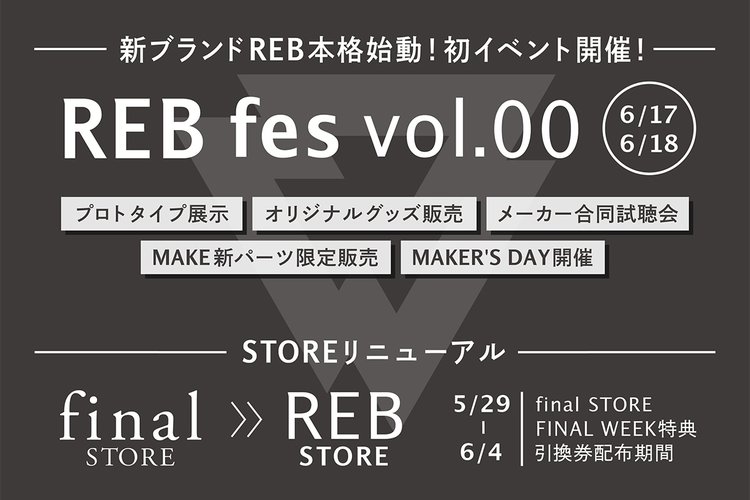 また、REB STOREの正式な活動開始に先立ち、プレオープンイベント「REB fes vol.00」の開催が決定。6月17日(土)・18日(日)に、final本社5階にて行われる。