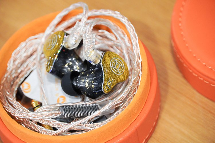 付属のケーブルやイヤーチップは専用品。Effect Audioによるカスタムメイドケーブルは、UP-OCC純銅リッツ線2本、純銀リッツと純銅リッツのハイブリッド線2本の計4本の線材を使用。EPO技術により音質に影響を与えることなく、優れた柔軟性を実気したという。筐体カラーに合わせたグレージュカラーも印象的だ。イヤーチップはAZLA製で、100%医療用シリコン採用の肌に優しいタイプを同梱する。