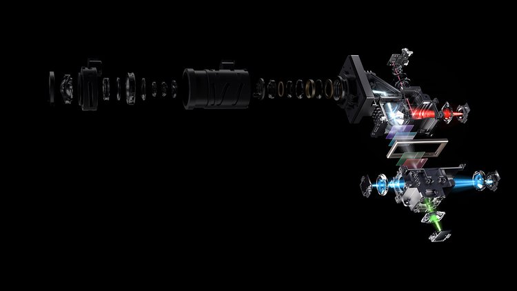 その仕組みは、赤色レーザーでLEDの欠点を補うことで、赤色の色域を拡大。レーザー輝度も向上するため、広色域と高輝度を実現。LEDはレーザーの弱みを補完し、長時間視聴しても目が疲れない自然な光のスペクトラムを実現するとしている。