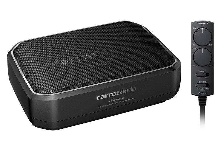 TS-WX140DAは、新開発のDSPイコライザー「DIGITAL EQ」を搭載し、低消費電流と力強い重低音再生を両立させたパワードサブウーファー。従来の「DEEP」「DYNAMIC」モードに加え、新たにPOPS系の楽曲再生を想定した「NATURAL」モードを追加。モードの切替えは付属のワイヤードリモコンによって行う。