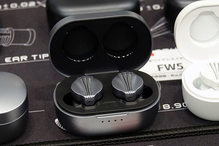 さらに、3種類の異なるドライバー(Sonion製 静電型ドライバー4基/PU+DLCダイヤフラム搭載 ダイナミックドライバー1基/Knowles製BAドライバー 1基)を搭載するユニバーサルIEM「FX15」と、片耳あたり合計10基のBAドライバーを搭載する同社マルチBA型IEMの最新フラグシップ機「FA19」も参考展示している。