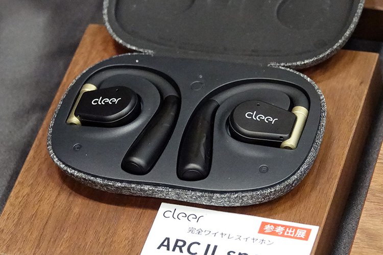 Cleerからは、オープンイヤー型完全ワイヤレスイヤホン「ARC2」を参考展示。「Music Edition」「Sports Edition」「Game Edition」という3クラウドファンディングを行っていた製品だが、イヤーフック部を細くして装着感の改良を図るなど、仕様を進化させたという。クラウドファンディングでの出資者へ発送した後、夏頃の一般販売も予定しており、税込33,880円前後での実売が見込まれる。