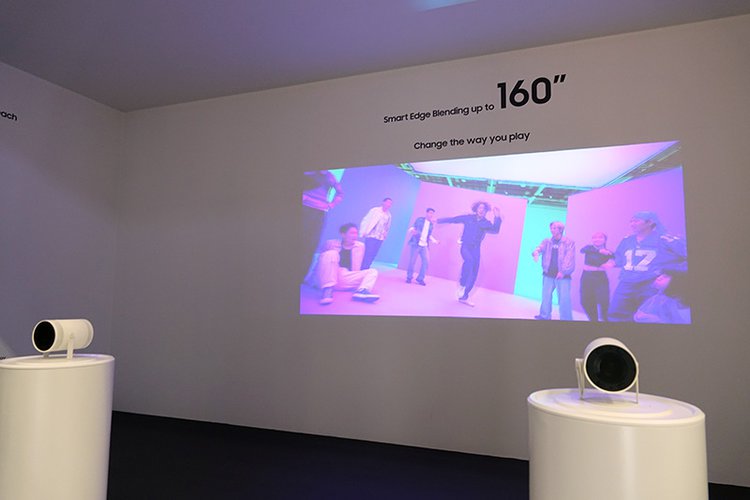 AV機器ではそのほか、モバイルプロジェクター「The Freestyle」の第2世代モデル「The Freestyle 2nd Gen」も紹介。単体でも100インチでの投映が可能な同製品だが、2台用意すれば「The Smart Edge Blending」機能によってそれぞれからの投映映像をスムーズに統合させて最大160インチ画面を実現できる。
