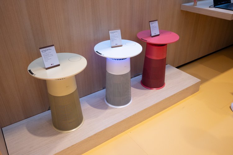 次に見えてくるのは、アップサイクルワークショップゾーンというエリア。ここではワークショップのほか、リサクルプラスチックを使用して作られた同社の家電製品の一部が展示されている。日本でも展開されている空気清浄機「LG PuriCare AeroFurniture」や、ノートPCの「LG gram」シリーズも並んでいた。