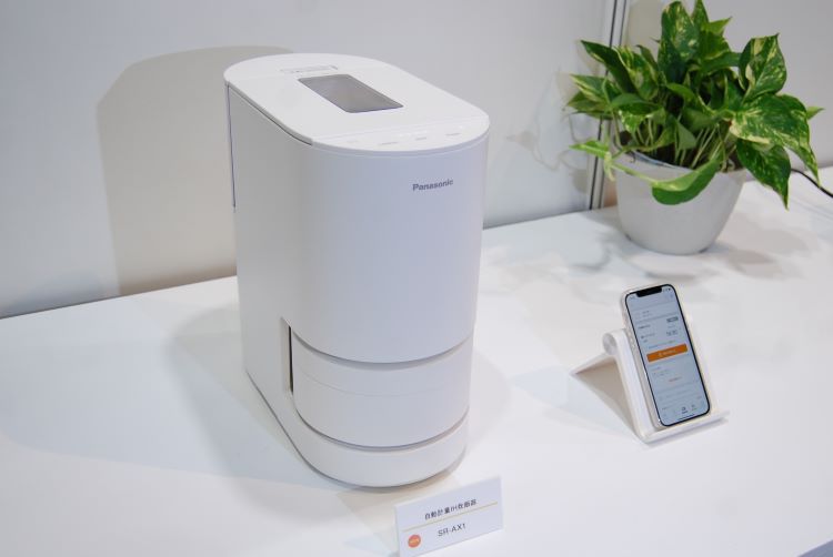 業界初となる自動軽量&遠隔炊飯機能を搭載した無洗米専用炊飯器「SR-AX1」について説明したのは、パナソニック(株)キッチン空間事業部 調理ソフト課・萩成美氏。アプリ操作により、米と水の軽量から炊飯までを全自動で完了。必要な時に必要なだけ、無駄なく炊くことができる。