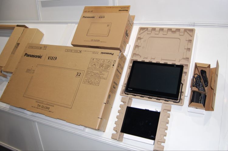 パナソニック エンターテイメント&コミュニケーション株式会社デザイン三課・佐藤徹氏が説明したのはサステナブルなパッケージについて。現在、家電製品の梱包エシカル化を推し進めており、緩衝材に折り込み段ボールや古紙を用いたパルプモールドを用いて発泡スチロールを削減。「結果としてパッケージが大きくなって物流コストがかさんでしまっては話になりません。入れ方や組み立て方にも工夫を凝らすことで大きさも維持しています」と語る。