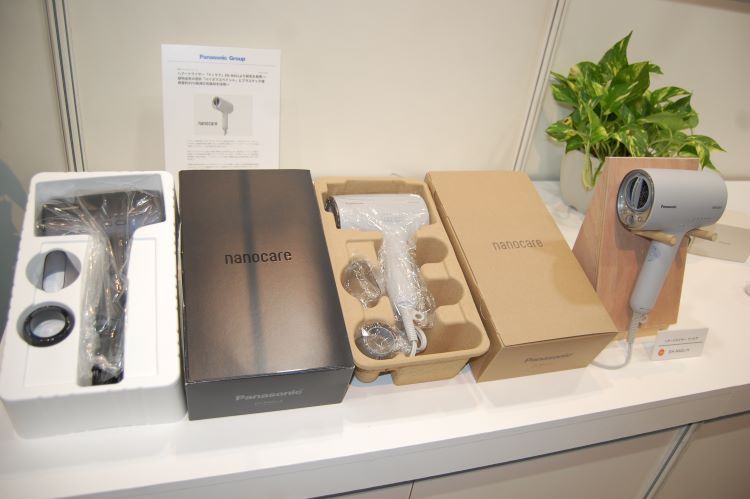 包装材についても環境に配慮した様々な工夫が凝らされていると説明したのは、パナソニック(株)くらしプロダクトイノベーション本部 ビューティー課・齋藤由紀美氏。印刷塗料を削減し、緩衝材はパルプに変更。包装材全体に占めるプラスチック使用量を約95%削減しているという。