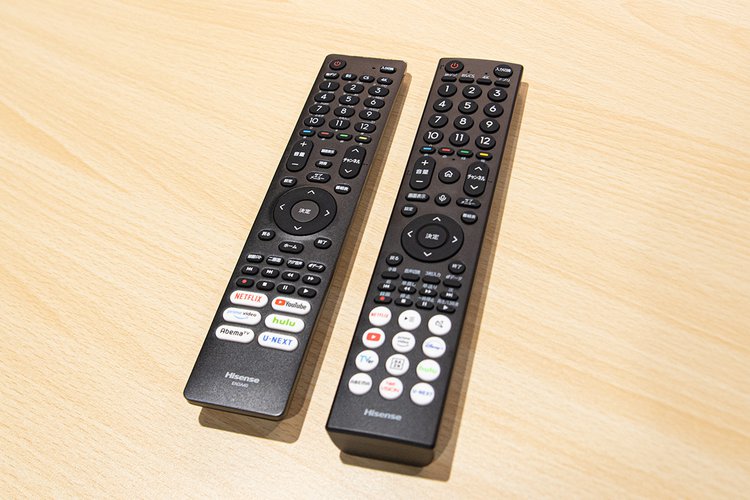 付属のリモコンについても上位機種に準拠したデザインへと刷新し、VODサービスのダイレクトボタンを10ボタン備える。テレビに向けなくても使えるBluetooth対応や音声でテレビ操作が可能な「VIDAA Voice」をサポート。また、裏面にはドット状の滑り止め加工を施すなど、あらゆる面で使い勝手を向上させている。