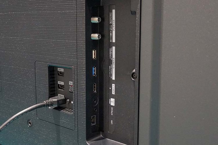 入力端子は全モデルにHDMI 2.1を2基ずつ搭載。HDMI 2.0ポートは75/65型が2基、55/50/43型は1基を備える。HDMI1入力のみeARC/ARC対応。ビデオ入力端子も1系統装備する。出力端子は光デジタル音声出力、ヘッドホン出力を各1基ずつ搭載。ほか、USB 2.0端子を2基、LAN端子を1基用意する。