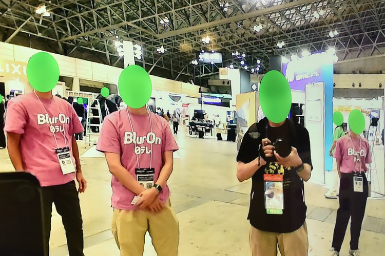 日本テレビでは、NTTデータの協力に基づくAI自動モザイクソリューション「BlurOn(ブラーオン)」のリアルタイムデモンストレーションを実施。これまで映像編集者が1フレームずつ行っていた人物の顔やナンバープレートへのモザイク入れを自動化することができる。
