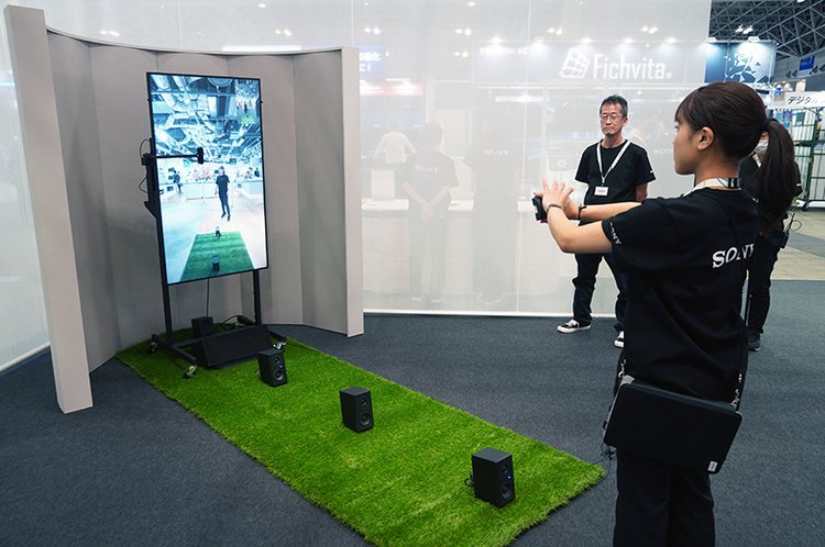 エンターテイメント分野への取り組みとして、「息子とキャッチボールがしたい」という視覚障がい者の一言から、音を頼りに仮想のボールでキャッチボールができる「XRキャッチボール」をデモンストレーションする。