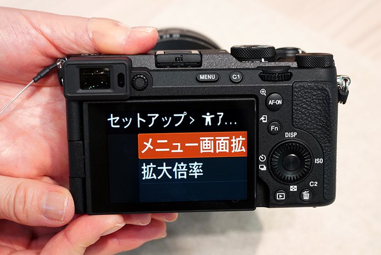 デジタル一眼カメラ「α(アルファ)」シリーズに採用するアクセシビリティ機能も紹介する。視覚に障がいがあるカメラ好きの社員と議論を重ねて開発した、操作をアシストする音声読み上げ機能やメニュー画面の拡大表示機能を、最新機「α7C II」「α7CR」で確認できる。
