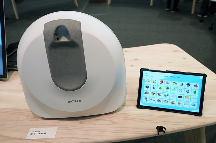 そのほか、認知症の早期発見などに有効な嗅覚測定が手軽に行える「におい提示装置」の展示では、約40種類(展示機では30種類)のにおいから、タブレット上で好みのにおいを選択することで該当のにおいを素早く提示する。ソニー独自技術のカートリッジ構造と本体内蔵の脱臭機構によってにおい汚染も抑制。何のにおいかを当てるクイズゲームも体験できる。
