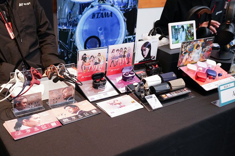 AVIOTのブースでは、10月に発売開始されたばかりの新モデル「TE-Q3」を中心に、ブランドが展開する多数の完全ワイヤレスイヤホンが並んでいる。