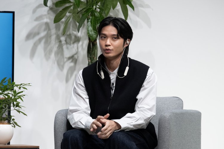 発表会には磯村氏も登壇し、CM制作時のエピソードを披露。CMには磯村氏を含め3名が出演しているが、残りの2人は磯村氏よりも年下だったため、まずはコミュニケーションをとって仲を深めてから撮影に臨んだとのこと。「僕は普段から、現場では初めましての方がいてもなるべく話をしてから撮影に入りたい人で、そうしないと自分も固くなっちゃうし、相手と同じ方向を向けると思っている。なのですごく耳スピと繋がる部分がある」と語る。