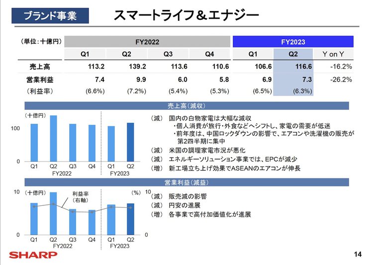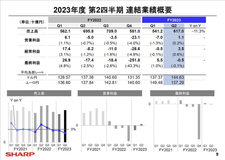 シャープ、2023年度2Q決算発表。最終利益は赤字も、下期での改善を見込み全社での取り組みを進める