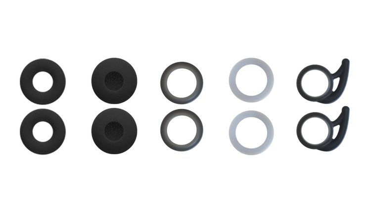 2種類のスポンジカバーが同梱しており、それぞれ低音強調/透明感強調の音質微調整が可能。ほか、密着感を高めるシリコン製リング2サイズ(M/L)、装着時の安定性を高めるシリコン製ウイングフックなども付属する。