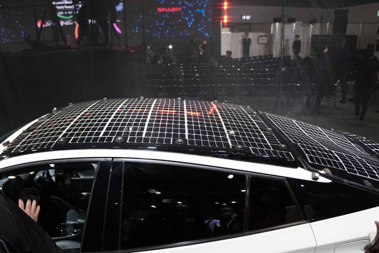 同じく「Sustainability」ゾーンでは、グリーンエネルギーとして、自動車用曲面ガラス一体型シリコン太陽電池と世界最高の変換効率33.7%を実現した「車載用太陽電池モジュール」や、色素増感太陽電池と液晶ディスプレイ技術を組み合わせた光発電デバイス「LC-LH」、化合物多接合型太陽電池を使用して宇宙用途に適合させた高効率・軽量・フレキシブルモジュールの「宇宙用ソーラーシート」などを展示している。