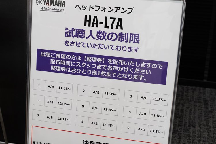 ヤマハは、11月30日に発売した初のハイエンドヘッドホンアンプ「HA-L7A」、および平面磁界型のフラグシップヘッドホン「YH-5000SE」の体験ブースを出展している。これまでのオーディオイベントから引き続き、試聴は整理券配布による予約制を取っているが、今回のポタフェスでは14時半以降、混雑していない場合にかぎりフリー試聴も可能になっている。