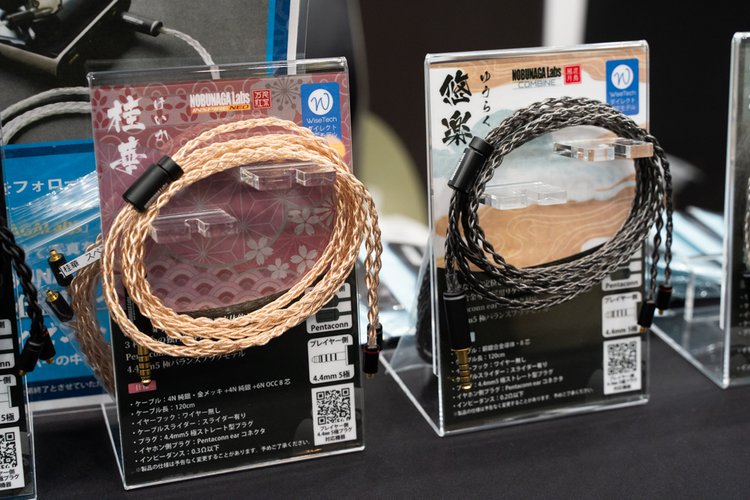 ワイズテックのNOBUNAGA Labsブランドでは、本日12/9発売の新イヤホンケーブル“COMBINEシリーズ”を出展。高純度無酸素銅と銀を独自の比率で組み合わせた「銅銀合金導体」を採用することで、自然な音の広がりや余韻、滑らかで透明感のある中高域、輪郭のある低域が味わえるという。MMCX端子を搭載する「浮舟」「雲隠」、2pin端子を搭載する「LUCIFER」「ECLIPSE」の4モデル展開で、18,800円前後での実売が見込まれている。