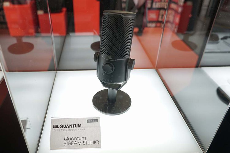 またJBLブースでは直販限定モデルが多く展示されており、それらを実際に目で見て試聴できる貴重な機会ともなっていた。参考展示品としては、マイク「Quantum Stream」の上位モデル、「Quantum Stream STUDIO」を世界初展示。192kHz/24bit対応で、来年以降の発売を見込む。
