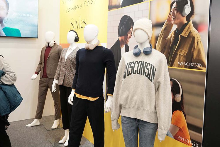 別のブースでは「黒柿」採用の密閉型ダイナミックヘッドホン「ATH-AWKG」が試聴できるようになっており、貴重な材木を用いたハイエンドモデルの音を確認しようと来場者が列をなしていた。また会場1FではBluetooth対応モデルがメインで展示されており、完全ワイヤレスイヤホンのほか、“サウンドバーガー” も並べられていた。