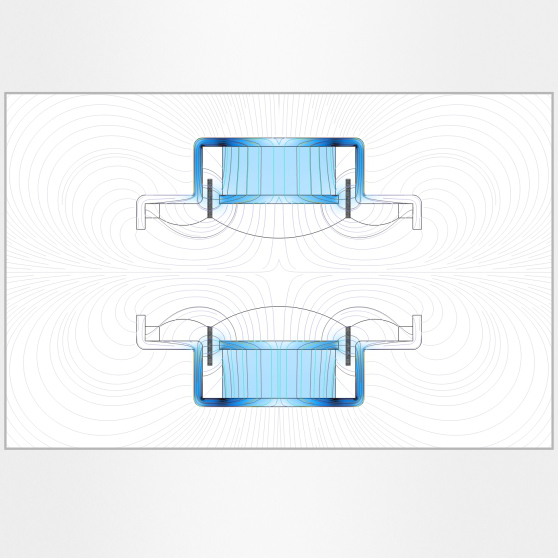 2基のダイナミックドライバーをより容易に駆動するため、2つのドライバーの磁気回路配置を巧みに利用する平面駆動型に近い原理を用い、2つのユニットの磁気ギャップに磁界が均一に集中し、伝送効率を向上して非線形歪みを低減するという。振動板にはペーパードーム+フレキシブルエッジを採用。ペーパードームの高いダンピング特性により、中高域の不要な共振を抑え、滑らかで自然な音色を実現する。