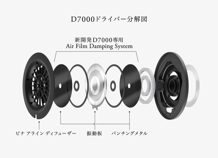 ドライバーには新設計の「ピナ アライン ディフューザー」や、より高効率な「AFDS(エアフィルムダンピングシステム)」を搭載。Dシリーズの特徴である平面磁界型の繊細な高域、ダイナミック型の量感と開放感のある低音を両立したサウンドに加え、特に声や弦の帯域の解像度が高く、艶のある滑らかなサウンドを実現したとのこと。
