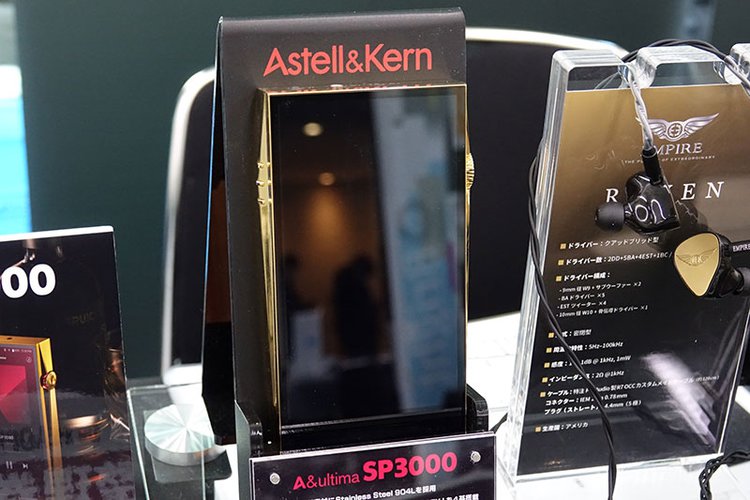 発売直後のAstell&Kern「SP3000 Gold」。Empire Ears「RAVEN」通常モデル参考展示