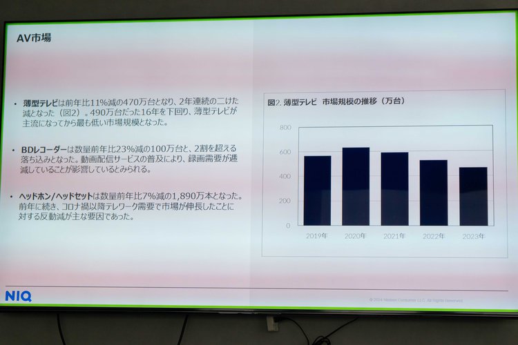 薄型テレビ販売台数は前年比11%減、Mini LEDや有機ELモデルは販売数量が倍増。GfKが家電・IT市場動向を発表