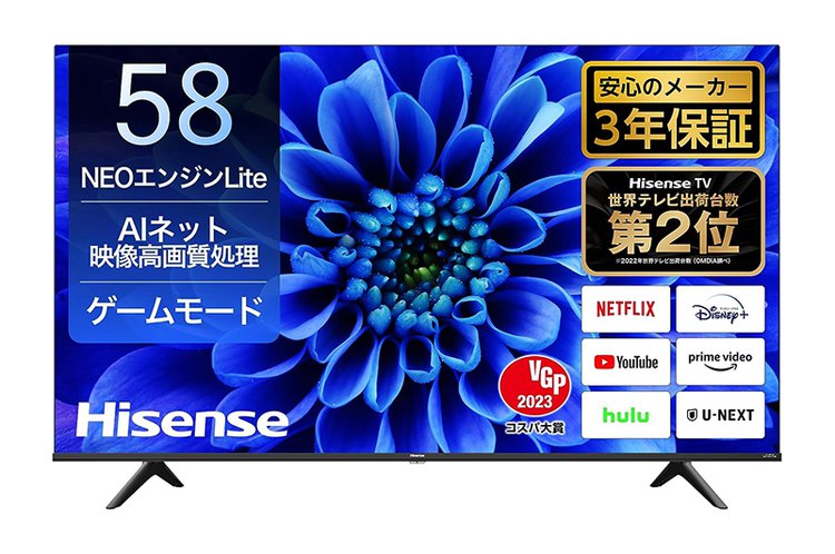 【Amazonセール】ハイセンスの58V型4K液晶テレビが6万5千円切りに!