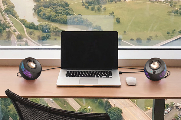 サテライトスピーカーにUSB-DACを内蔵し、PCなどの端末とUSB接続することで音質劣化の少ないデジタルオーディオ再生が楽しめるUSBスピーカー。Bluetooth接続や3.5mm AUX端子でのアナログ接続にも対応する上、3.5mmヘッドセット出力/3.5mmマイク入力も搭載。USB接続時にゲーミングヘッドセットを併用したり、マイクを接続して音声通話に利用することができる。