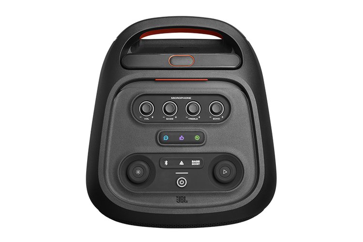 PartyBox Club 120は、前モデルからポータビリティ面でも改良を加え、機能面でも大幅にアップデートを遂げたとするモデル。新たに折りたたみ可能なキャリングハンドルを筐体天面に装備し、片手で持ち運びが行える。
