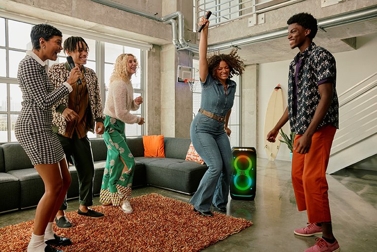 さらに、PartyBox Stage 320とPartyBox Club 120の両モデルともに筐体にマイク入力を2基備えており、それぞれの入力を使用することで最大マイク4本まで接続が可能。2セット品の本モデルを最大2セット購入することで、大人数でのカラオケやストリートライブなども楽しめる。