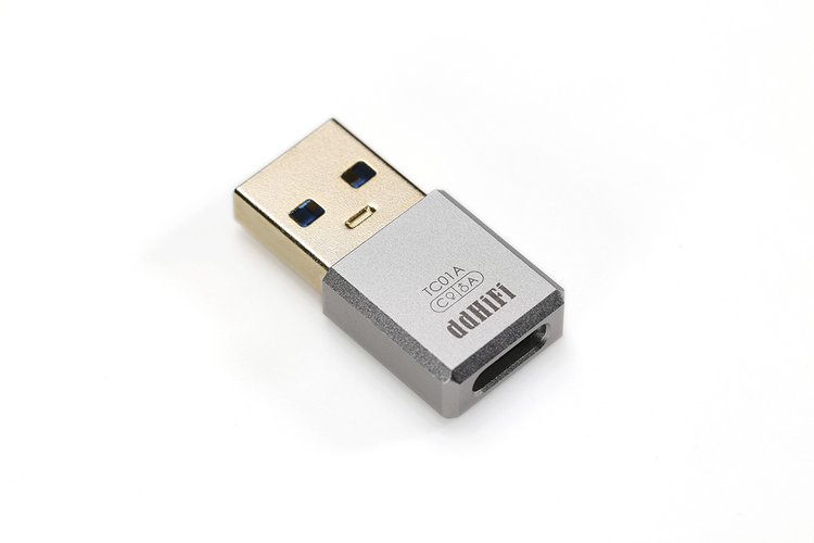 TC01Aは、USB-C(メス)to USB-A(オス)の変換に対応するコンバーター。USB規格上推奨される仕様ではないが、急速に進むUSB-C採用の流れに対応し、HiFiクオリティーに対応する本機を開発したとのこと。プラグには24K金メッキを採用。筐体はCNCアルミ合金。外形寸法は15.6mm×9mm×6.5mm(プラグ含まず)、質量は約22.5g。