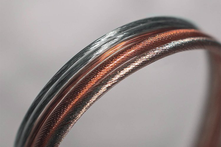 素材は114芯の単結晶銅と単結晶銀を撚りあわせた導線を採用。不純物を廃する厳密な溶接基準で作成された、信号の純度を損なわず電流伝達が可能な高導電性ケーブルとしている。各線の内部抵抗を0.02Ω以下に低減し、電流通過能力を極限化させたほか、データ伝送用と電源供給用でそれぞれ異なる撚り合わせを行い、導電能力を最適化したと同社はアピール。