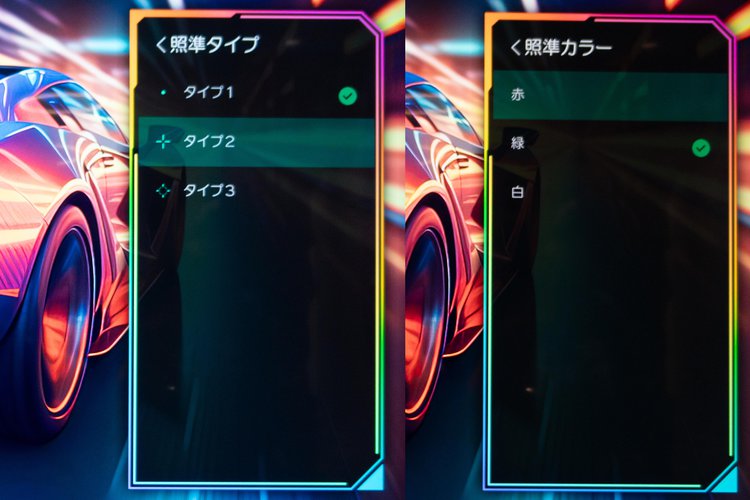 ポインター(カーソル)表示にも対応しており、照準のカラー/サイズ/タイプをカスタマイズすることができるようになった。対戦型ゲームなどで要求される低遅延とスムーズ表示を実現する「ハイスピード144Hzゲームモード」は65型/75型に搭載している。