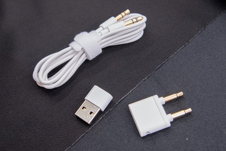 型番が示すように本モデルも「ハイブリッドソリューション」を打ち出し、LC3+コーデックに対応するドングルを付属。使用しない場合にはハウジング部をスライドさせ、イヤーカップ内に収納できる。電源、再生、停止音量調整などは物理キーで操作。3.5mmジャックを搭載し、付属の3.5mm to 3.5mmオーディオケーブルを用いて有線使用もできる。