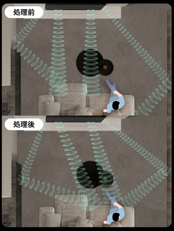 新たな音響補正技術として、リモコンを用いた「オーディオキャリブレーション」を備える。リモコンに内蔵されたマイクで、テレビから送り出されるテスト信号を受信・測定することで、視聴環境に応じた音響特性の自動調整を行う。これにより、適切な設定で臨場感あるサウンドを楽しめるとしている。