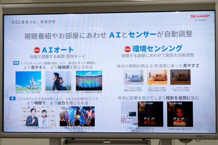 AIオート時に映画/ドラマ/スポーツといった映像ジャンルに最適化する「番組ジャンル連動」、AI画像解析によって人の顔や空のオブジェクト情報を認識して適した色補正を掛ける「オブジェクトAI識別」、最適なカラーマッピングを行う「リッチカラーテクノロジープロ」といった高画質機能も実装する。HDRフォーマットは、Dolby Vision/HDR10/HLGに対応し、視聴環境の明るさと関連するDolby Vision IQもカバーする。