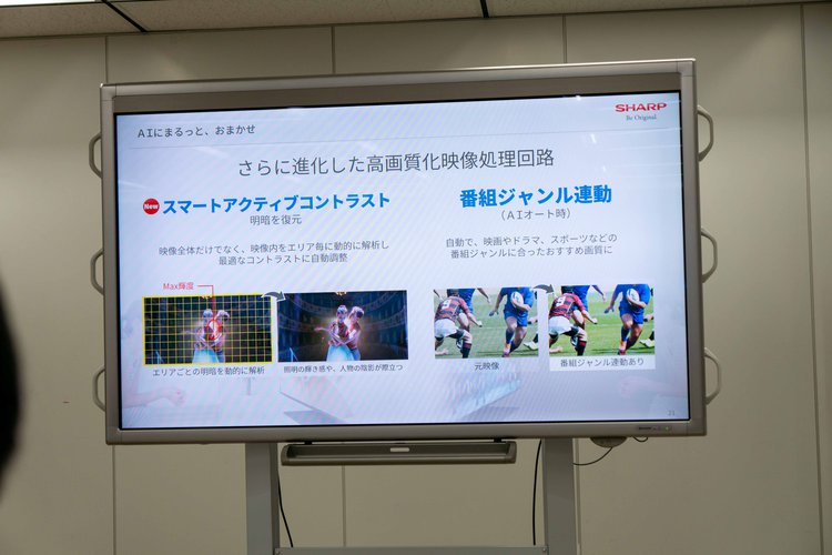 新たに「スマートアクティブコントラスト」機能も採用しており、映像のエリア毎に明暗を解析して、暗部の陰影、明部の輝度感など、シーンの特徴に合わせてコントラスト処理が可能となっている。