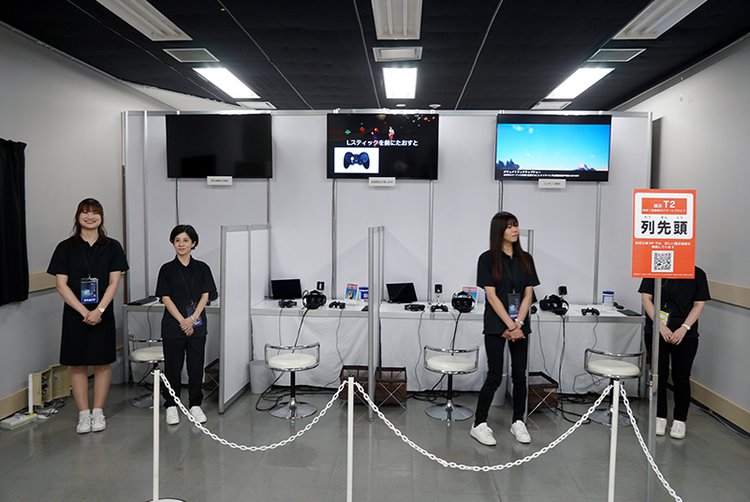 体験デモでは、冒頭にHMDを装着してコントローラーを手に、3次元空間内に構築された『できるかな2030』を視聴することが可能。一部カメラ固定のシーンを除き、コントローラーによる操作や顔の向きによって番組の3次元空間内を任意に移動することでき、登場キャラクターたちによるパフォーマンスを自由な視点から楽しめる。その後は前方に構える大画面スクリーンで番組を視聴することも可能だ。