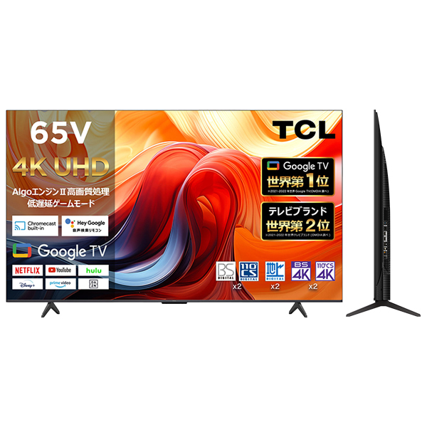 いずれもバックライトは直下型LEDで、60Hz駆動、画面解像度は4K(3,840×2,160)に対応。HDRフォーマットは、ドルビービジョン、HDR10+、HLGをサポートする。映像エンジンとしてTCLの「Algoエンジン II」を採用。放送やネット動画など表示コンテンツを解析し、最適な高画質を提供するとしている。