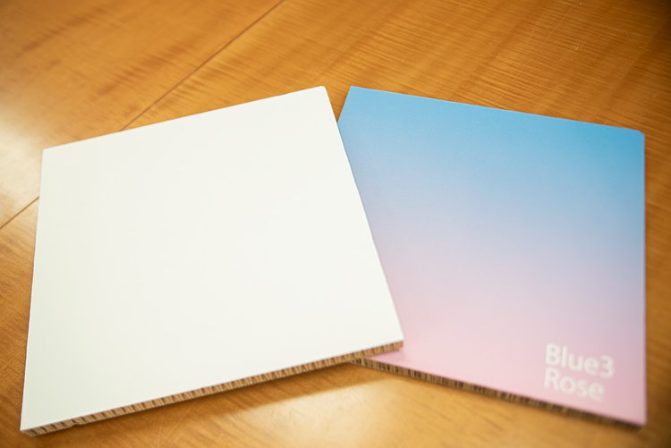 素材として厚みはあるものの、ダンボールならではの中空構造でベニヤ材よりも軽量化を実現したという。また、これまでのベニヤ材は合成紙でプリントしたものを貼り付けていたが、ダンボール素材では表面にそのままプリントが可能。現地での組み立てやすさと共に、輸送時に発生するCO2削減も達成できるとアピールしてくれた。